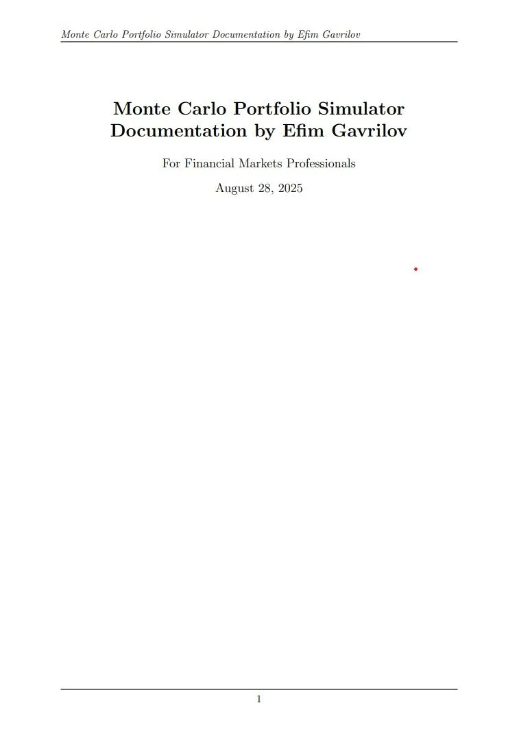 A concise profile of the Monte Carlo Portfolio Simulator, a stochastic modeling tool that generates thousands of forward-looking scenarios to assess portfolio outcomes under uncertainty. It incorporates user-defined returns, volatilities, and correlations, enabling analysis of allocation strategies, risk/return trade-offs, and goal achievement probabilities. Key outputs include fan charts, sharpe ratios, maximum drawdowns, and target success rates — making it a practical framework for portfolio construction, risk management, and client communication.